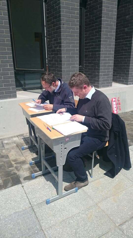 两段精彩的报告结束后,三位教授分发了一个调查表,他们想了解大家都有什么问题和诉求,例如:“你们对专业都有什么期待?”“你们对项目小组有什么想说的?”“你的职业目标都有什么?”大家用英德双语写下了自己的答案,两位教授期间拿到外面,细细阅读,总结出了大家最关切的问题,并作出解答。