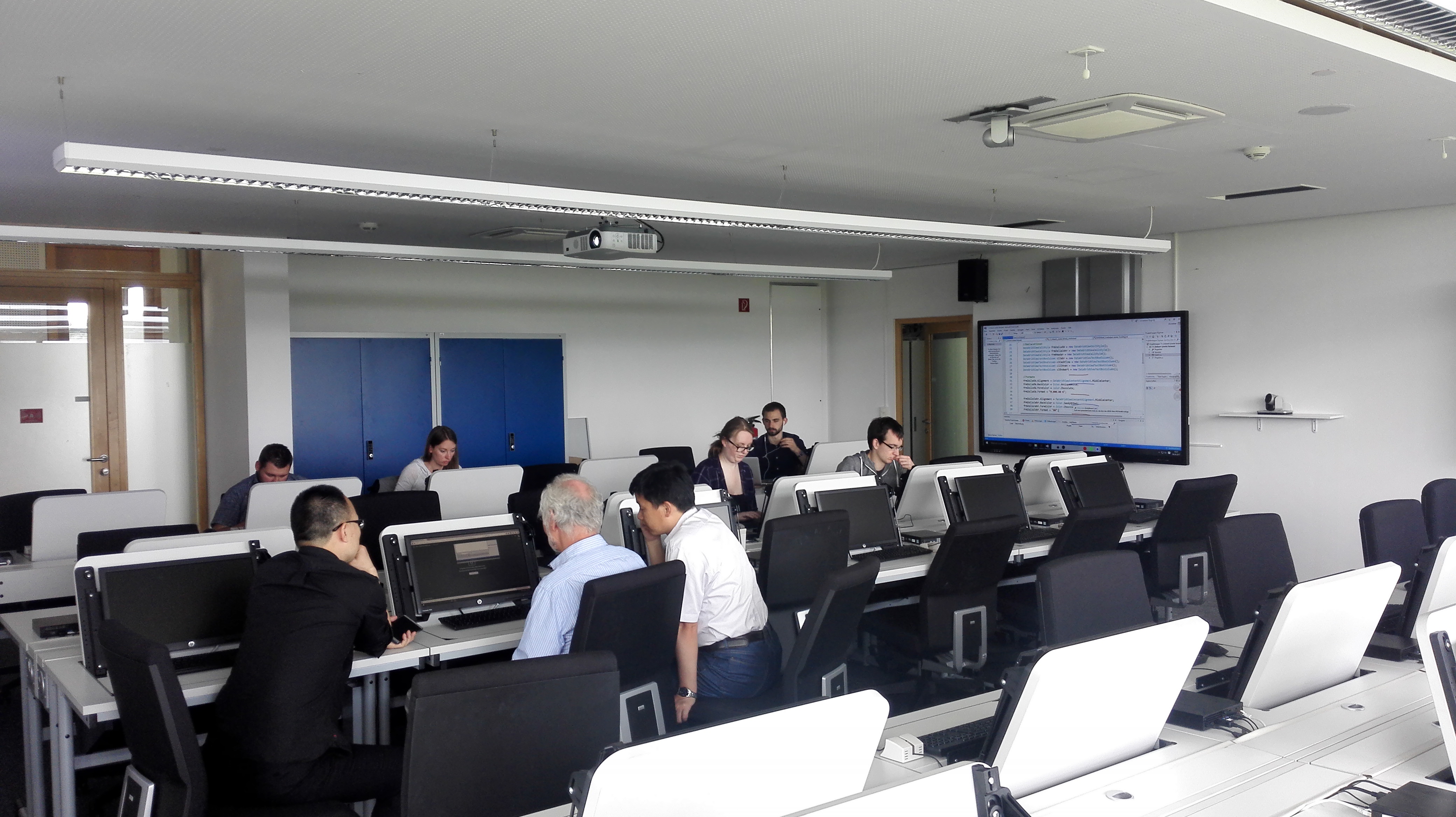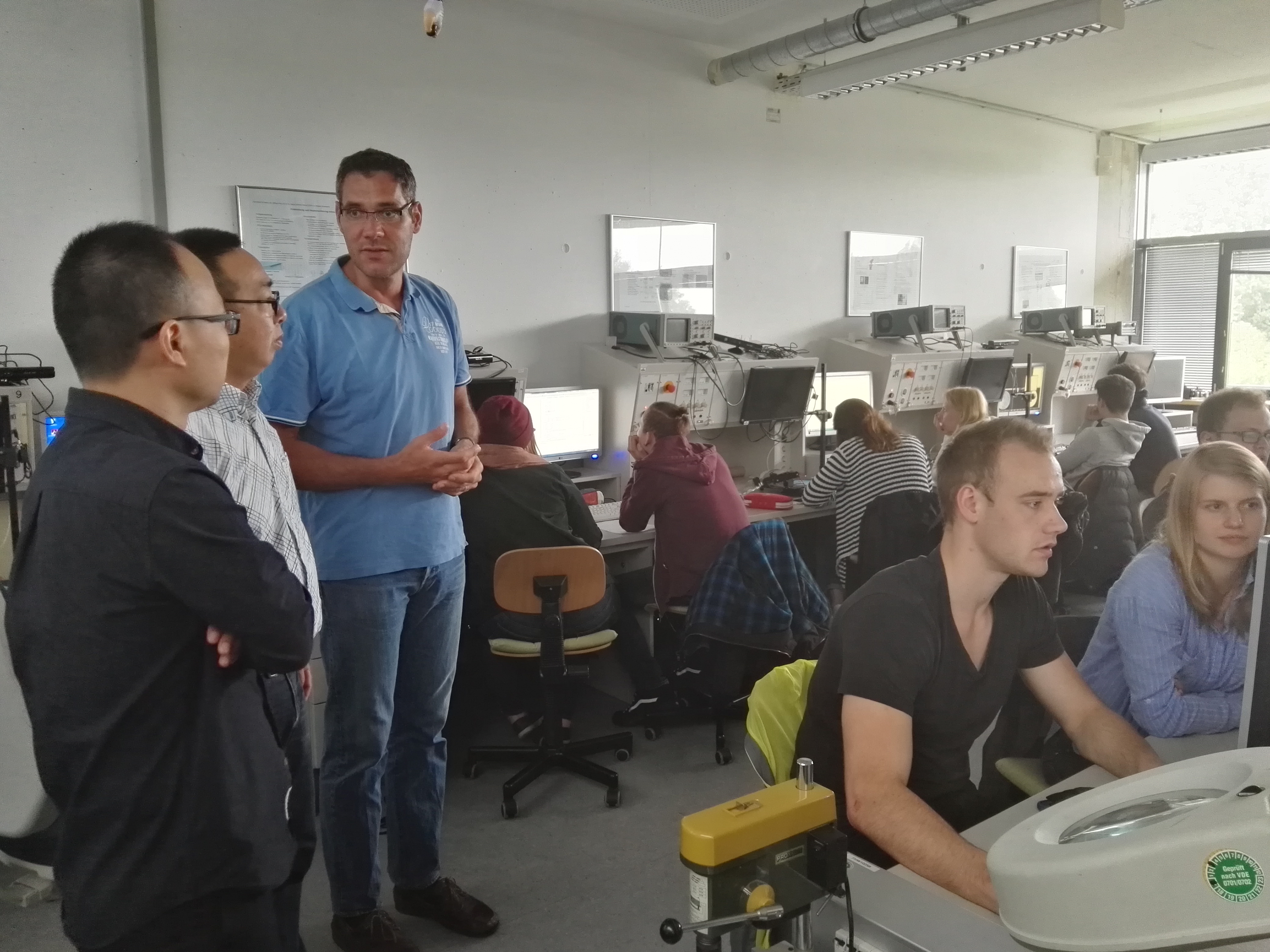 访问期间,我方教师同多位德方教授进行了有关课程教学和实习教学的探讨,进一步了解了德国西海岸应用科学大学合作专业“管理与技术”(MUT)的总体教学情况、实验室情况以及相关教学要求。中方教师同德方布劳恩(Blaue)教授重点探讨了C#课程的教学,围绕课程考核方式的改革开展了引入项目式考核的探讨,并现场观摩德方穆勒(Müller)教授的“标准商务编程”的实践课程,同德方实习负责人艾伯格(Ebberg)教授深入探讨了EAM(电气工程及其自动化专业)学生的实习模块教学及赴德学生的实习教学与答辩的衔接问题,以及同MUT专业负责人瑞兹(Rietz)教授探讨了赴德学生的跨学科项目和高级项目教学的开展。此外,中方教师还同德方工程学院院长廷森(Jensen)教授讨论了ACG盒子 的实验室建设问题。