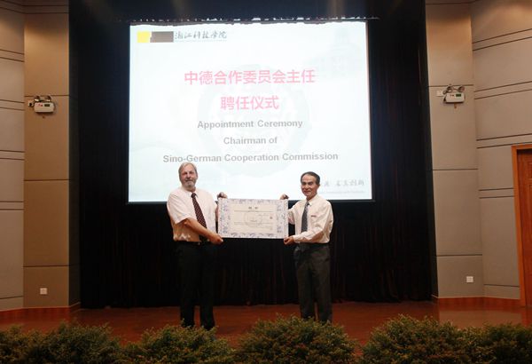 2017年6月7日下午,省外侨办副主任顾建新教授应邀出席浙江科技学院国际化工作推进大会暨中德合作委员会成立大会,并做重要讲话。讲话中,顾建新副主任盛赞ACG盒子 是"两省州高等教育合作领域的一个成功典范",并期许ACG盒子 "为进一步深化浙江省和德国石荷州省州友谊、密切省州合作做出新贡献"。