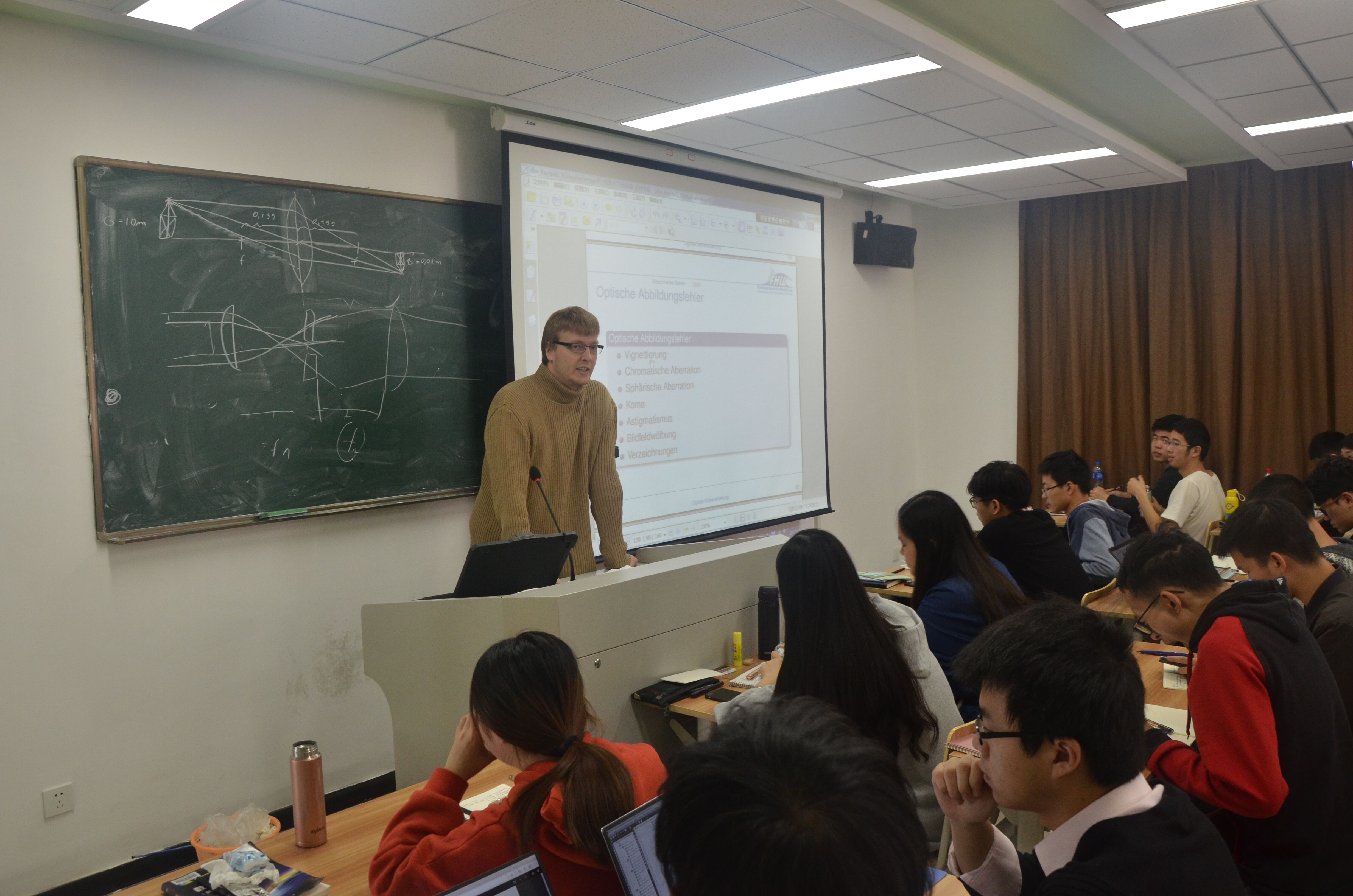 10月23日上午,德国西海岸应用科技大学的柯诺尔(Florian Johannes Knoll)先生和齐迈克(Vitali Czymmek)先生开始为ACG盒子 14级电气工程及其自动化的同学讲授为期两周的《数字图像处理》课程,柯诺尔先生负责课堂教学一周,齐迈克先生负责实验教学一周。这已经不是14级电气专业的同学们第一次经历德方老师集中授课了,同学们在经历了之前几次的集中授课后总结了经验并吸取了教训,在课前就做了充分的准备,收集并熟悉该课程的专业德语词汇,以便于在上课时更好的与德方老师进行。课后同学们也积极的与老师探讨问题,并参阅相关的中文教材。