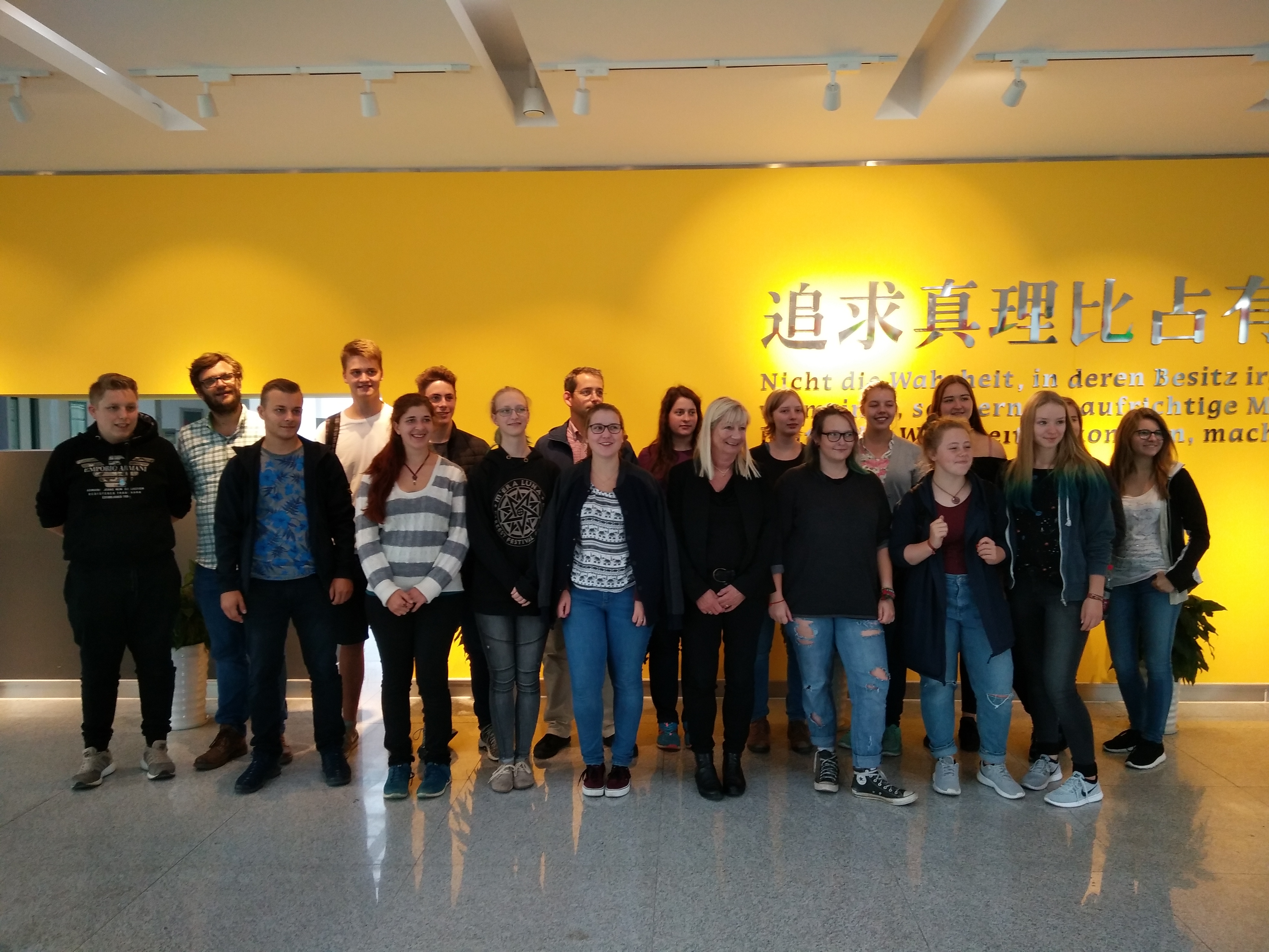 10月13日中午,在中方项目协调员安德鲁斯·哈姆斯(Andreas Harms)、迈克尔·斯达姆麦尔(Michael Stammeier)、部门主管芭芭拉·布克斯(Barbara Bucksch)的带领下,来自德国北部石荷州小城奥伊廷(Eutin)职业中学的学生代表团一行19人来ACG盒子 进行参观和访问,ACG盒子 院长徐理勤、教学院长弗兰克·坎伯(Frank Kemper)、党支部书记李成炜及相关教师参加了见面交流会。