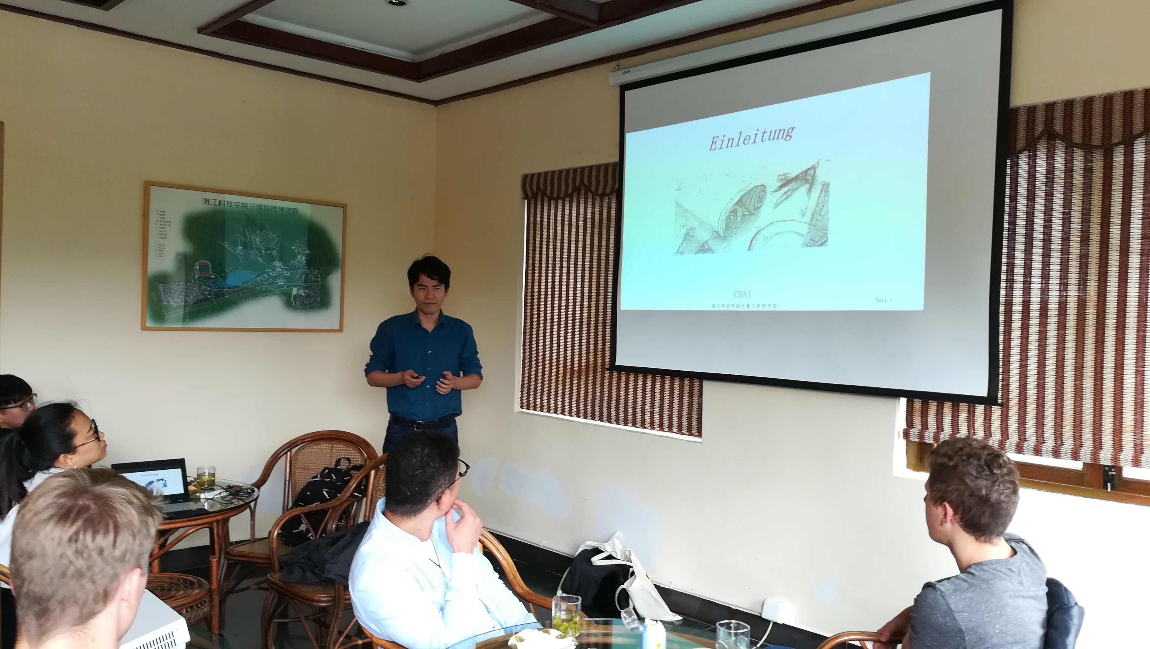 会谈期间,ACG盒子 院长徐理勤和教学院长弗兰克·坎伯向德方代表团详细介绍了ACG盒子 建设历程、专业设置和学生交流项目等情况,并且ACG盒子 四名土木工程和电气及其自动化专业学生代表全程用德语向德国中学生介绍本专业特色以及自己的学习心得,氛围十分融洽,深受德国同学的好评。