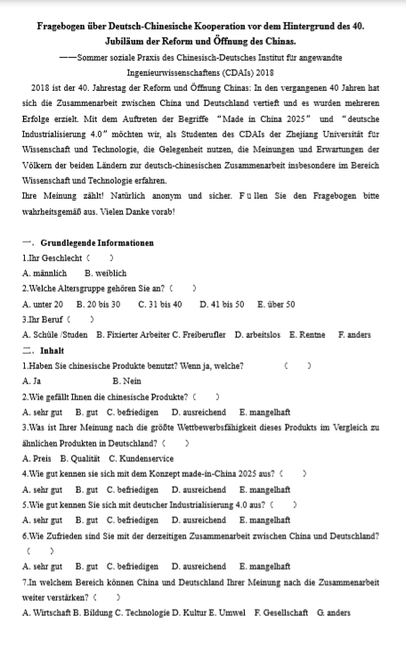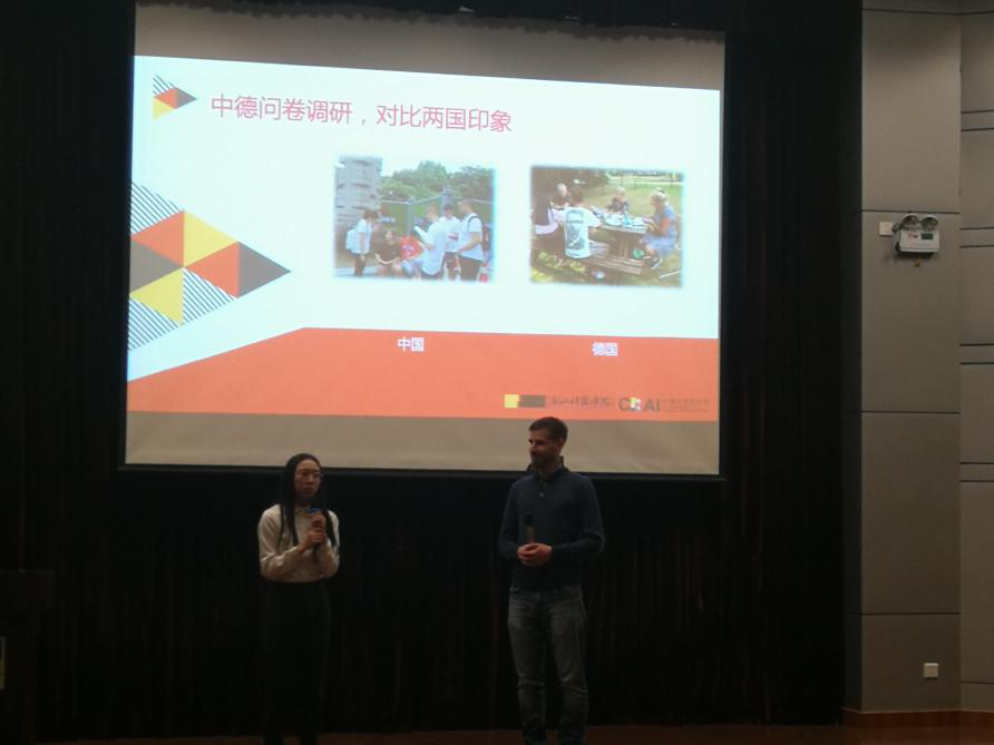 大会上,ACG盒子 代表吴双同学通过“参观主题学习,增强党性修养”、“德国名企参观,感受科技力量”以及“多地街头参访,一窥中德合作”三个方面,向大家详细介绍了这次以“与改革同行,与世界同步”为主题的暑期社会实践活动。从观看《厉害了我的国》感受中国崛起的热泪盈眶,到参观浙江美术馆学习改革开放背景下敢为人先的时代精神,再到赴井冈山革命博物馆了解革命老区人民艰苦奋斗的历程,Verbreiter团队成员们通过观展、看视频,提高党性修养。在德国吕贝克,团队成员参观了德国石荷州“H+H”公司、“Dräge”公司。干净的车间,现代化的生产及科学的管理,成员们近距离感受到科技的魅力和德国工业4.0的先进。同时团队精心准备了中德两个版本的调查问卷,分别在杭州与德国海德进行发放。共回收有效问卷73份。通过数据对比分析对于中德两国人民在产品、技术和国家战略的认识方面有了更直观的了解。