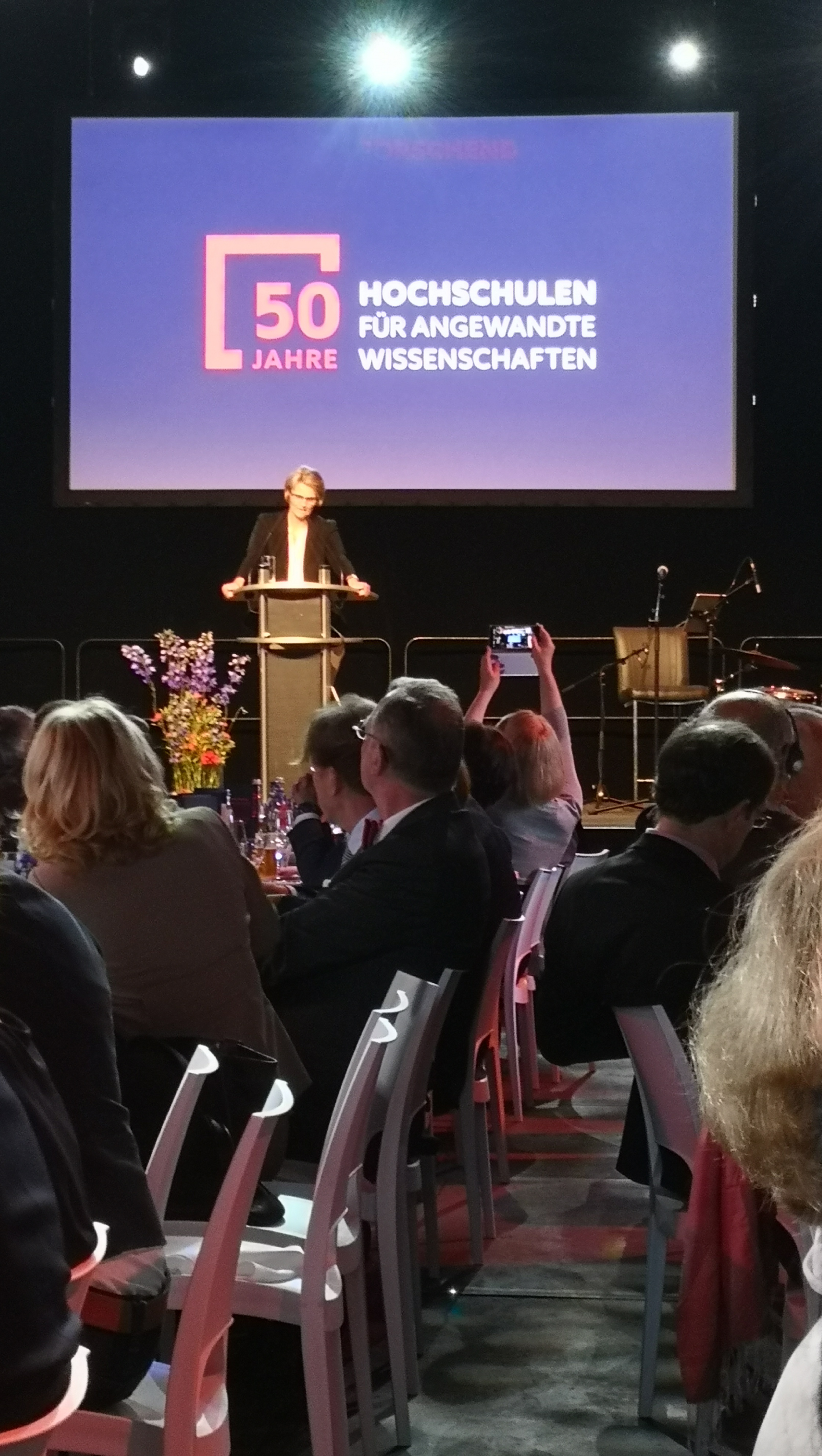 (3)参加德国应用科学大学成立50周年系列活动: 访问期间,代表团应邀出席由德国大学校长联席会议举办的德国应用科学大学成立50周年庆典,在庆祝活动中聆听德国教育研究部部长Karliczek女士、德国高校校长联席会主席Alt教授、石荷州教育科学文化部部长Prien女士等嘉宾详细、全面地介绍德国应用科学大学自成立至今的发展历史、探索之路及成功经验;并参加专家论坛“世界各类型高校体系的发展”,了解美国、芬兰、法国、中国等国举办应用型高校的成功经验及举措;并出席由吕贝克应用科学大学举办的国际研讨会“中国跨境教育项目的前景与挑战”,不仅了解到国内兄弟高校华东理工大学在举办中德合作办学项目过程中的经验及举措,同时就ACG盒子 在发展过程中遇到的挑战及取得的成效与国内外同仁进行分享。