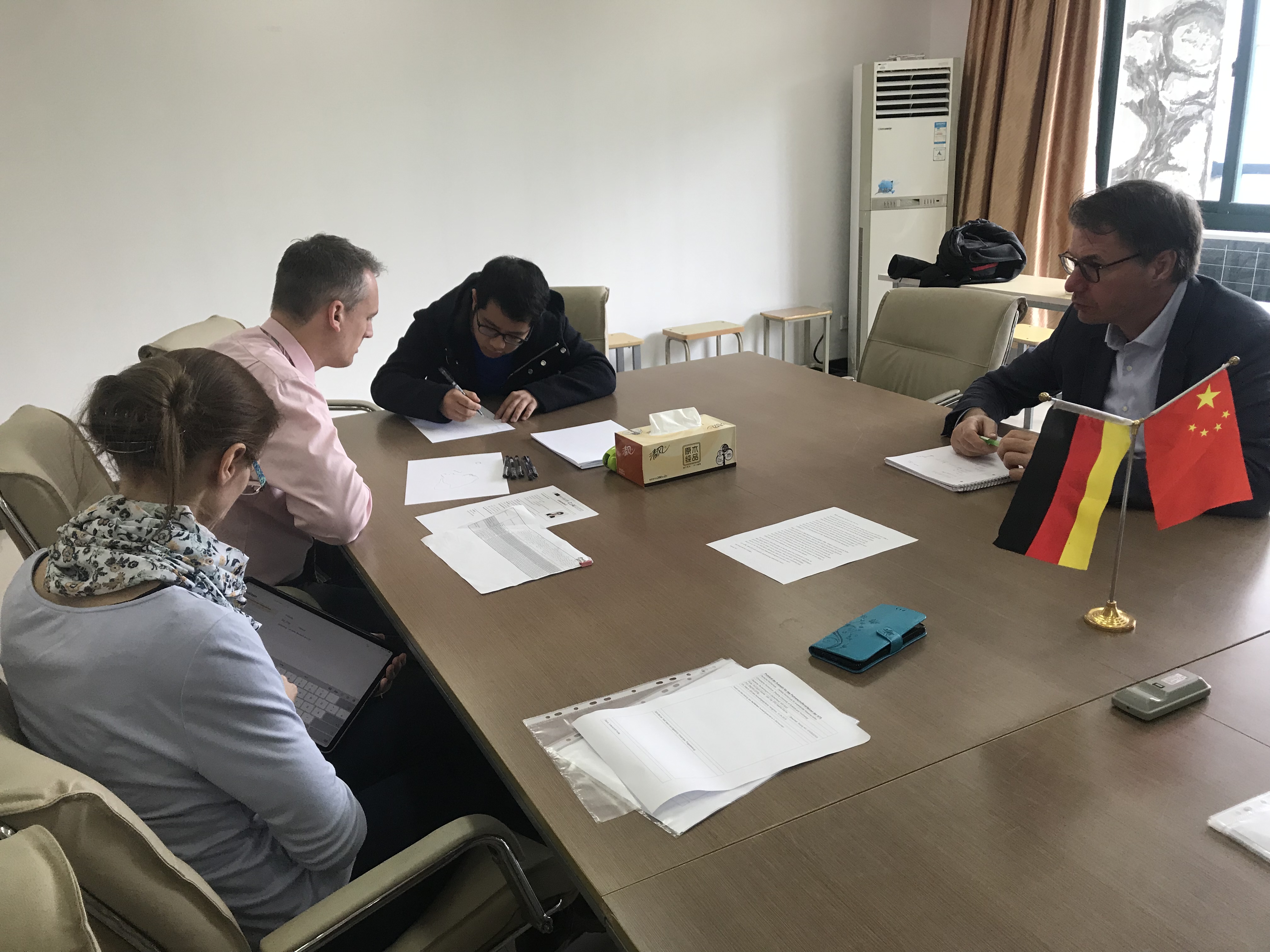 4月9日至13日,德国波鸿应用科技大学土木和环境工程学院院长斯蒂芬·吕衡(Prof. Dr.- Ing. Stephan Löring)教授前往ACG盒子 进行为期5天的交流访问,学院院长徐理勤女士、教学院长弗兰克·坎伯教授(Frank Kemper)、土木工程专业实验室工程师金韶霞和沈潇扬等接待此次访问。