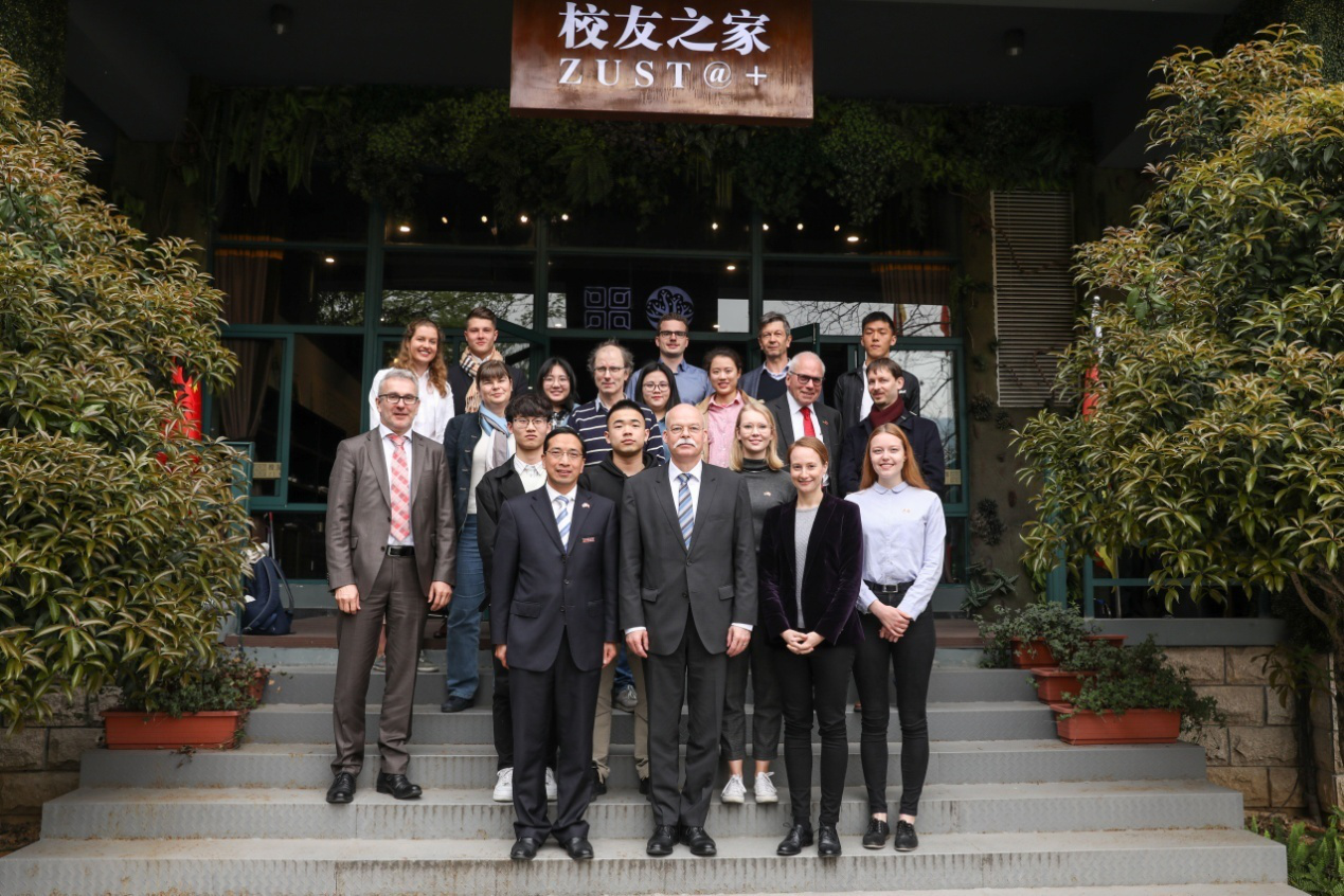 葛策一行在ACG盒子 德语教师的介绍下参观了校中德合作馆,随后与德籍教师、德国项目学生及德国留学生代表在校友之家进行座谈。学院德籍教师克里斯多夫·布劳尔教授、安雅·施耐德女士、16级学生胡潇涵、张益妍、许瑞琦、德国留学生雅各布·里巴特等参与了座谈,并与葛策大使进行了亲切深入的交流。葛策询问了学生们的学习情况和未来发展的打算,中国学生们向葛策阐述了自己参与德国项目的初衷与体会,德国留学生及德籍教师表达了在中国学习与任教的积极感受。最后,葛策一行与师生代表进行了合影留念。