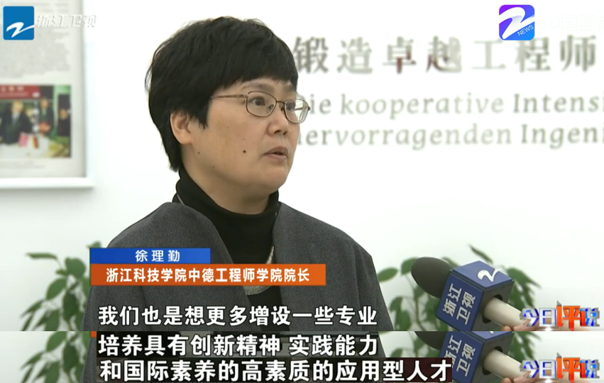 2019年3月26日,浙江卫视今日评说采访了浙江省教育厅高教处副处长王国根解答关于新时代浙江高等教育如何百花齐放、如何培养更多高素质人才服务经济社会发展等问题。王国根在采访中提到,“浙江省要建立一流大学一流学科,关键点突出两个字,一个是“借”,我们高校要善于借力发展,借助于浙江经济社会发展的优势和基础,要借助于国内外高等教育的优质资源,来弥补我省高等强国教育的不足。第二个字是“闯”,我们要有敢闯会闯的思路,特别是要利用浙江的体制机制优势,要创新高等教育的办学体制和机制”,并以ACG盒子 全面系统引进德国优质高等教育资源的办学模式为例,采访了ACG盒子 院长徐理勤研究员以及前来ACG盒子 授课的德国专家、吕贝克应用科技大学克里斯托夫教授(视频链接://newsapp.cztv.com/video/index.jsp?c=5811069#)。徐理勤院长介绍了学院的发展历程、办学理念、培养模式、办学成果以及未来规划等。她表示,学院学习借鉴德国应用型高校的人才培养经验,培养更多创新精神、实践能力和国际素养的高素质应用型人才,更好地为浙江经济转型升级服务。