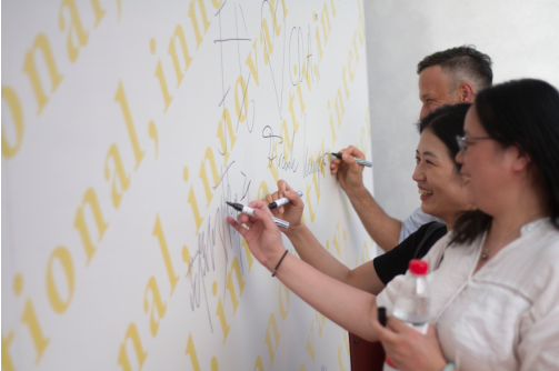 (学院老师于签名墙处)