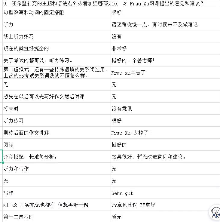 学生对德语在线教学的热情普遍较高,参与积极、按时打卡报到,大部分同学能做到不迟到不早退,有课程冲突及时向老师线上请假,并能够按时完成作业,在课上互动也较为顺利。