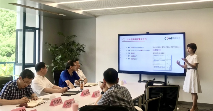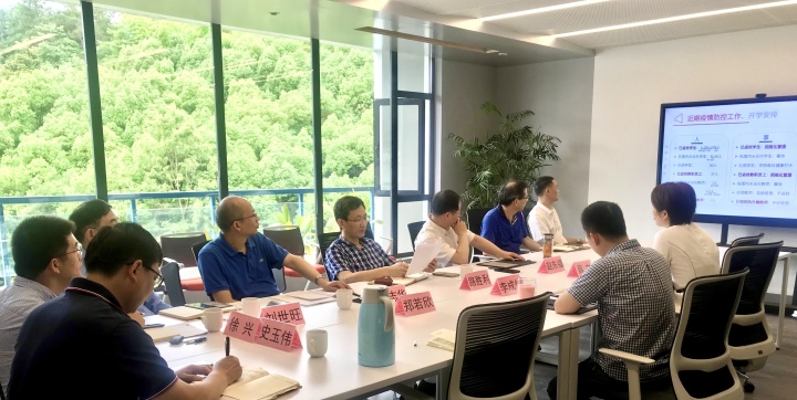 2020年6月3日上午,校长赵东福率相关职能部门领导一行共8人来学院调研,听取了学院领导对近期疫情防控及学生返校复课工作、本年度工作梳理及学院“十四五”规划的汇报,并对学院下一步的工作重点和方向提出了要求。