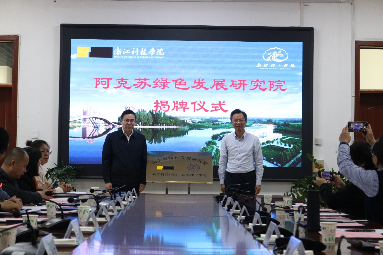 3月1日,校党委副书记符宁平一行赴新疆理工学院交流考察,并为我校与新疆理工学院共建的“阿克苏绿色发展研究院”揭牌。浙江省援疆指挥部人才组组长蓝邓俊出席揭牌仪式。