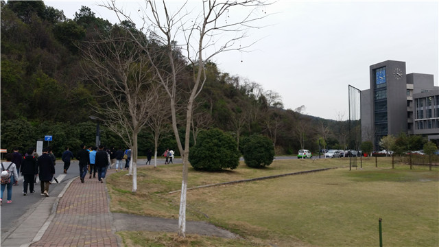 校车在2点30分到达了美丽的小和山校区,在老师的带领下首先参观了藏书丰富的图书馆,馆内各种专业的教科书和各种中外文文献让同学们喜出望外;翻开厚厚的书页,夹杂着书香味的字母更是打消了同学们因坐车带来的疲倦。