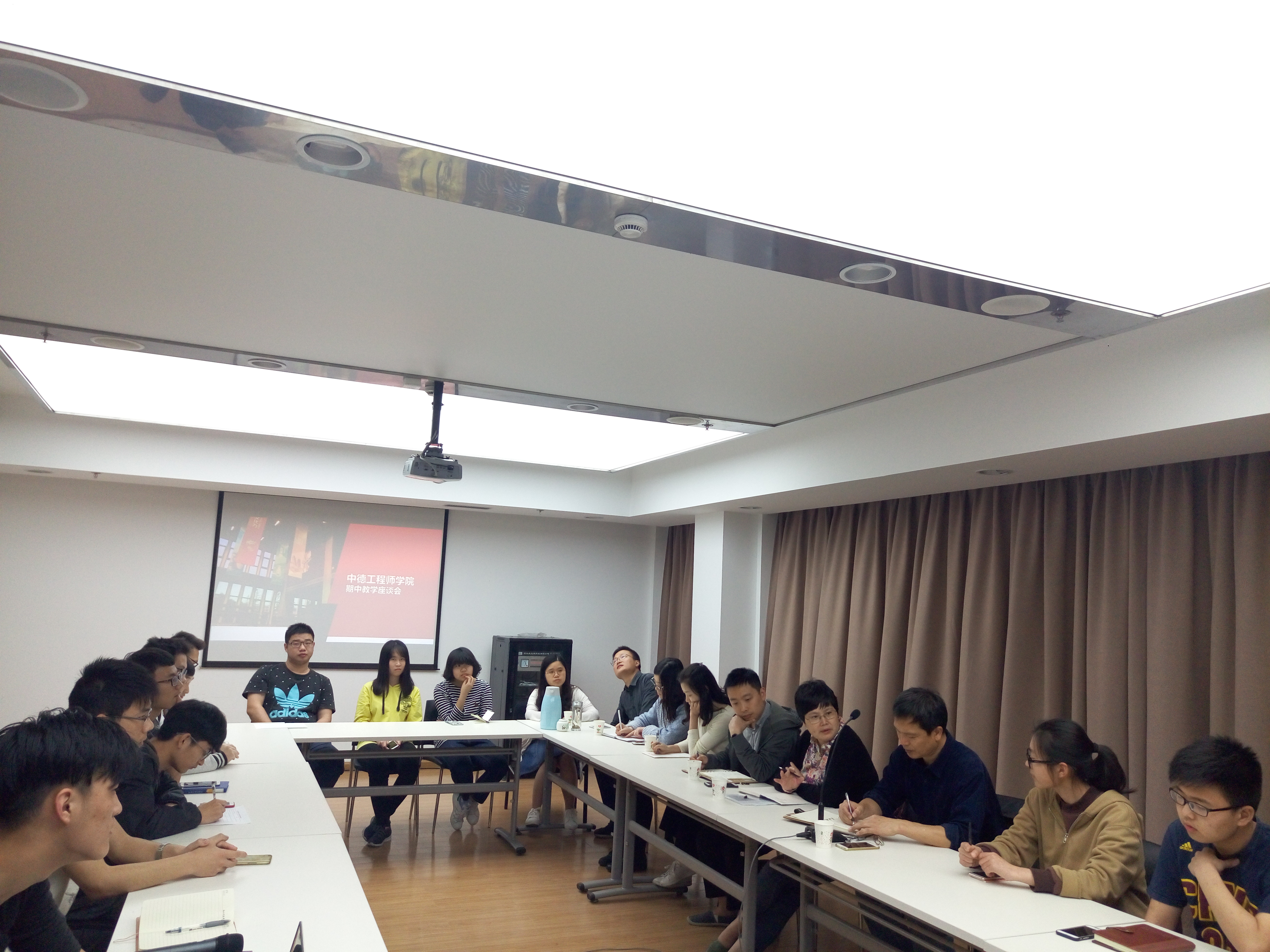 2017年4月27日18:15,ACG盒子 于安吉校区中德E207召开本学期期中教学师生座谈会。电气与土木专业各十余名代表参加了此次座谈会。会议由院长徐理勤老师主持,土木专业负责人文献民老师、直属党支部书记李成炜老师各专业秘书以及任课教师代表和辅导员出席。