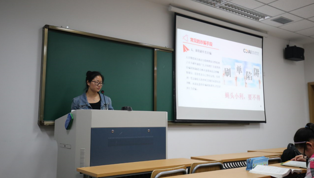 报告开始,辅导员熊书利老师和王韬老师从各种常见诈骗手段中,结合实例为学生们科普“校园贷”陷阱,希望同学们在大学生活中多一份警惕,少一份危险。
