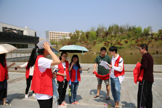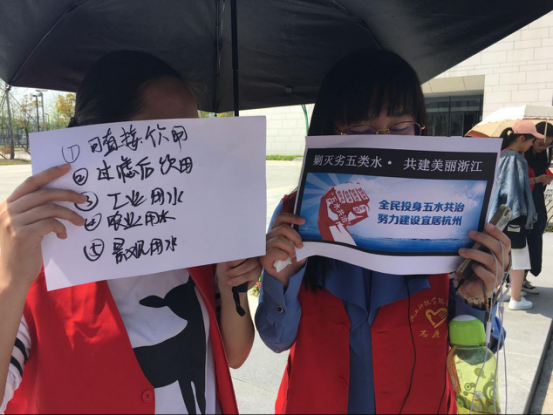 4.16下午一点,虽然烈阳高温,但是同学们热情高涨。同学们先集合学习五水共治的相关知识和背景,之后便开始争分多秒地组队出发啦。