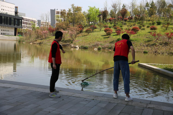 整洁的河道既有利于环境的美丽,也有利于水质的卫生。班委们4.15上午到学校附近的水库采水取样,调查学校周围的水源水质情况。同时不顾泥泞拾取片片垃圾,捞起校园内的湖中零星漂着几个包装袋和瓶。在水源地设置了小游戏,调动大家参与活动的热情。