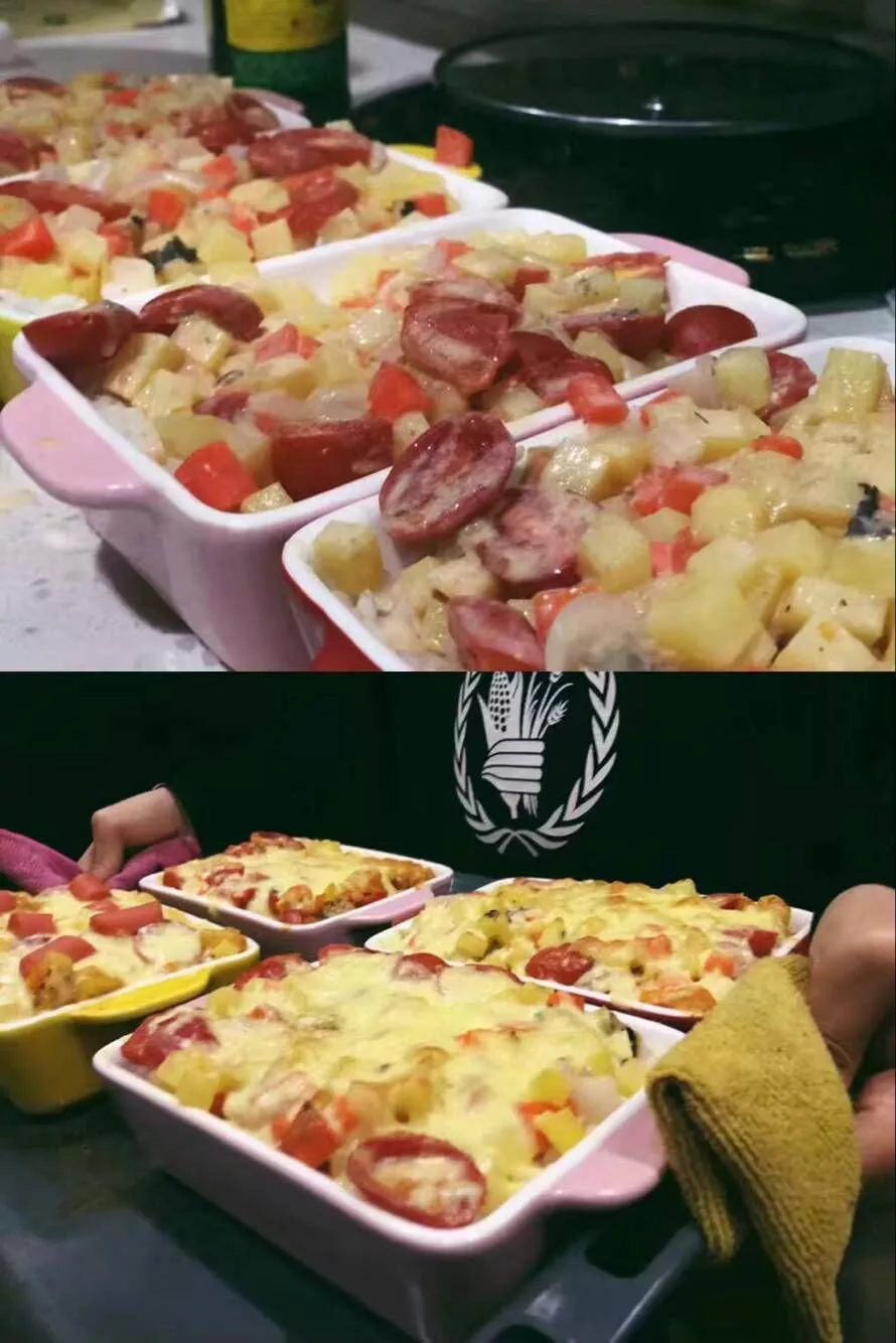 本次活动的主题是德式芝士焗饭。成员们网上搜索相关做法,在从准备米饭、采购食材、切块摆盘、添加辅料翻炒,放入烤箱烤制。在等待的过程中,成员们交流了制作的心得,并分享了与美食的故事。随后,同学们进行品尝环节,大家一致认为,自己动手付出劳动的美食格外香。