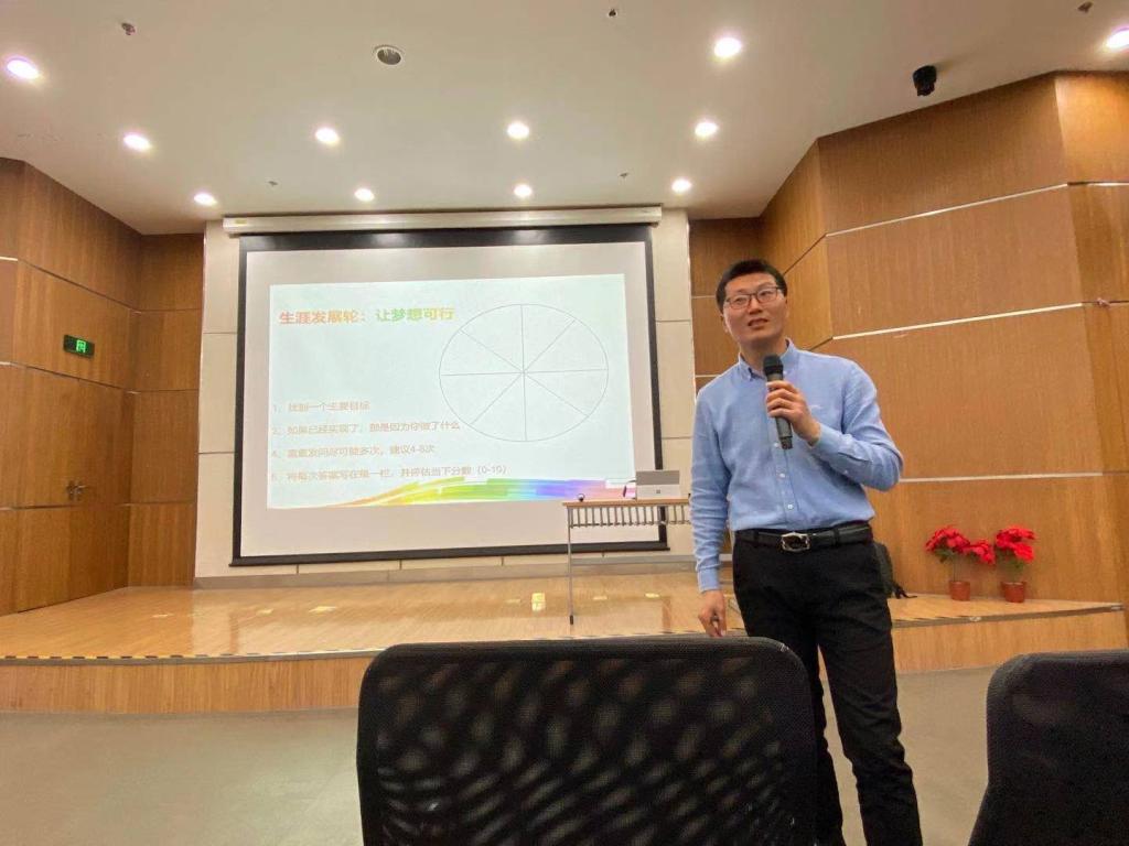 首先,武老师通过互动式提问“过去几年,自己最快乐、最自豪、最幸福、最遗憾的事情有哪些”,并以当下国家十四五规划及二0三五年远景目标为例详细阐述了规划的重要性。紧接着通过对“我想要什么”为话题开展头脑风暴,引发同学思考,“如何让时间留下我的痕迹”、“在数十年的生命里如何让自己不留遗憾”……,并结合金树人的求学九件事、生涯平衡单等为同学们的大学生涯指明了方向。有了目标不去落地一切都是空谈,武老师随即把如何让梦想可行的秘密武器分享给了同学们,即通过生涯发展轮一步一个脚印的迈进你想成为的自己。最后,武老师用视频和典型任务事迹鼓励同学们人的潜力无限大,希望大家拥有自己的梦想,努力奋斗,不完美的行动远胜过完美的等待。