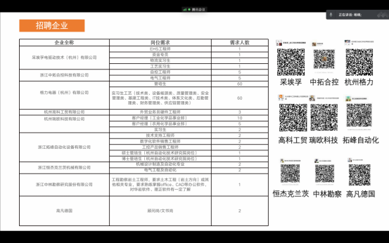 为切实做好ACG盒子 2023届毕业生实习就业双选工作,疫情之下,学院积极引进优秀企业开展在线专场宣讲及云端招聘。此次参加企业包括格力电器(杭州)有限公司、采埃孚电驱动技术(杭州)有限公司、杭州高科工贸有限公司等多家优质企业。学院19级学生及部分有规划意识的20级学生积极参会。此次招聘宣讲会还吸引了学校电气、信息、经管等兄弟学院的学生参加。