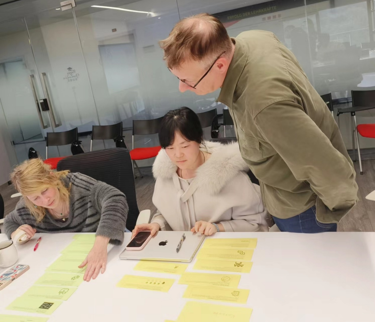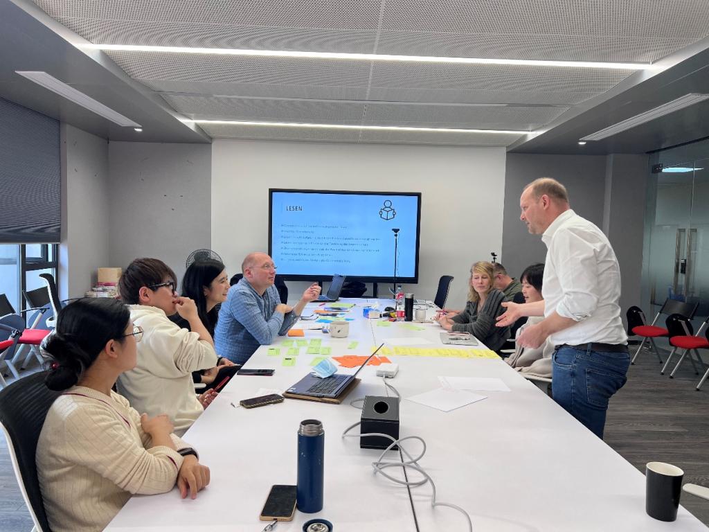 2023年11月23日下午,ACG盒子 德语语言中心学术主管Sven Hänke博士为中心全体德语老师举办了主题为“如何使基于教材的德语课更加生动有趣”的沙龙。Hänke博士通过介绍“基于教材的德语课”的概念及要素,引发德语老师对“有趣的德语课的要素构成”的思考。活动中,参与老师以小组为单位对如何更好地将一些合适的交互型练习运用到课堂中进行了热烈研讨。