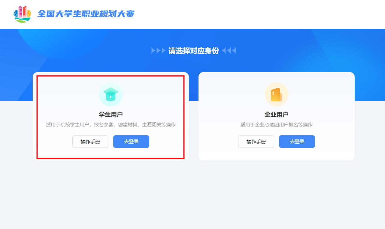 大一学生:通过大赛平台参加成长赛道的比赛,提交生涯发展报告等相关材料,做生涯闯关;要求全部参加。