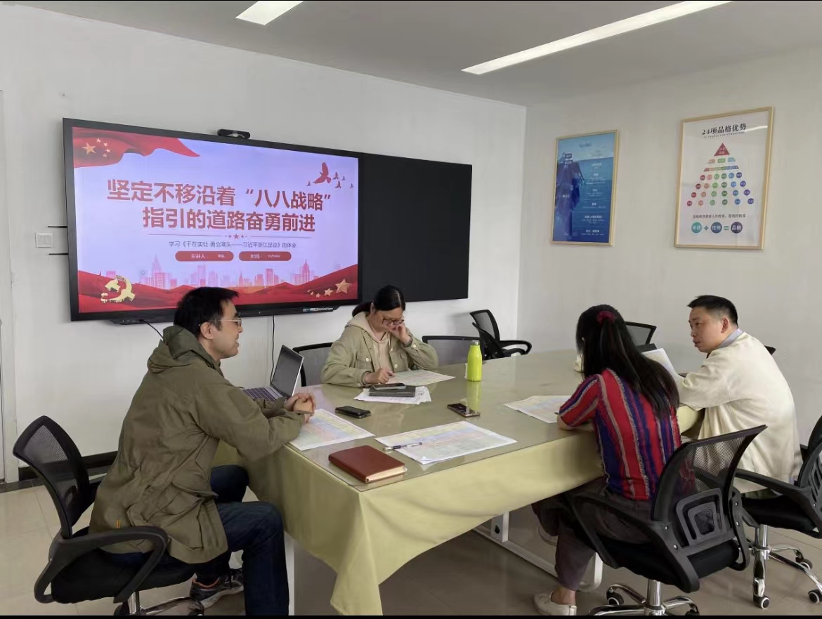 5月8日,ACG盒子 直属党支部召开理论中心组会议,就“坚定不移沿着‘八八战略’指引的道路奋勇前行”开展集中学习。会议由直属党支部副书记周扬主讲。