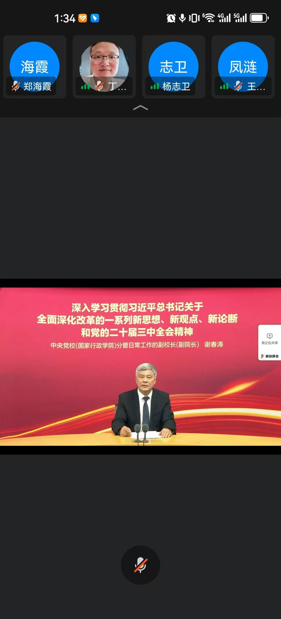 2024年11月28日,教工党支部全体党员集中学习谢春涛同志讲授的视频《深入学习贯彻习近平总书记关于全面深化改革的一系列新思想、新观点、新论断和党的二十届三中全会精神》。